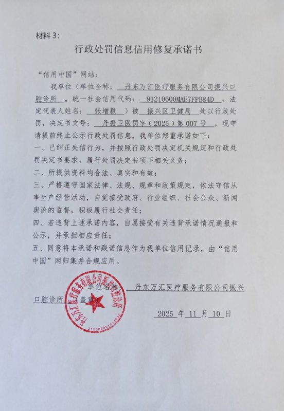 丹东万汇医疗服务有限公司振兴口腔诊所