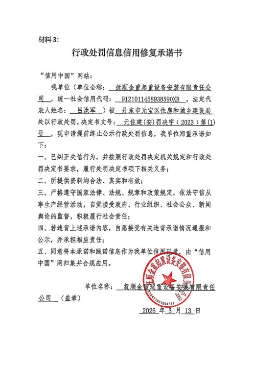 专栏:信用修复型信用承诺书