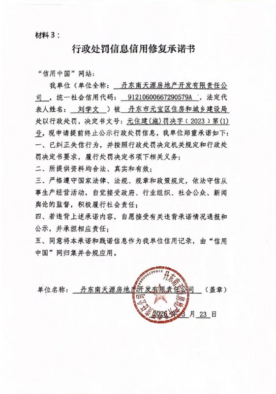 专栏:信用修复型信用承诺书