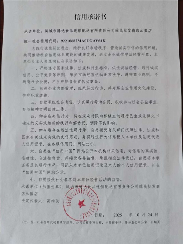 凤城市腾达食品连锁配送有限责任公司维民批发商店加盟店