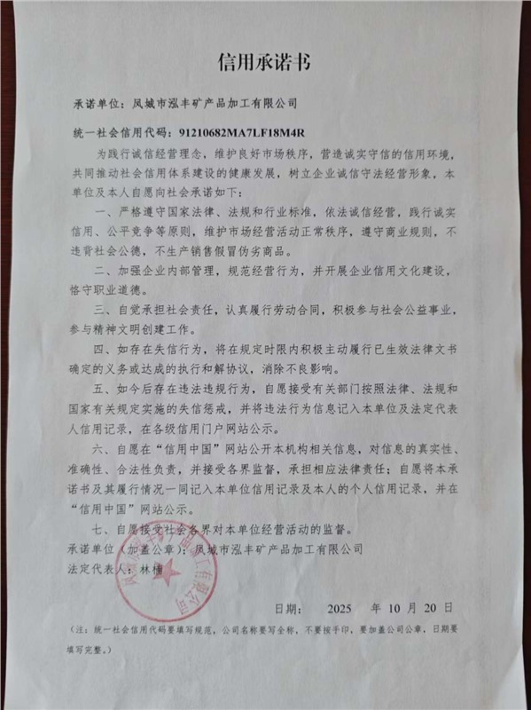 凤城市泓丰矿产品加工有限公司